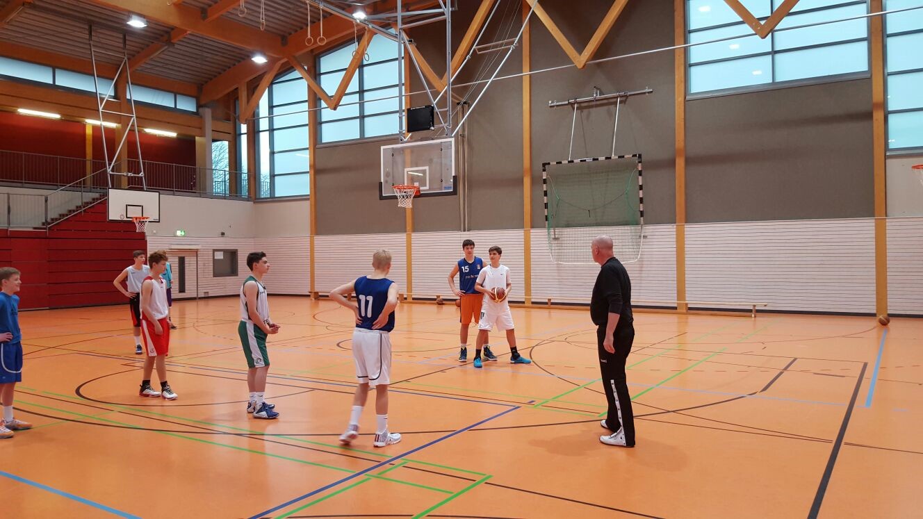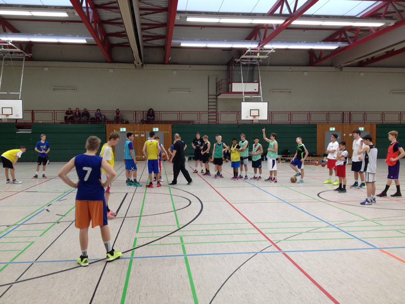 Am vergangenen Samstag trainierte der Jungenkader 2002 und jünger in Düsseldorf. Mit etwas Verspätung (der Hausmeister hatte den Termin „nicht mehr auf dem Schirm!) nahmen die einsatzfähigen 27 Spieler (Timmi Gimbel war anwesend, konnte aber auf Grund eines Mittelfußbruches nicht mittrainieren) das Training auf. Unter Anleitung von Assistantcoach Sebastian Altfeld wurde zuerst am Ballhandling und am offensiven 1-1-Verhalten gearbeitet.