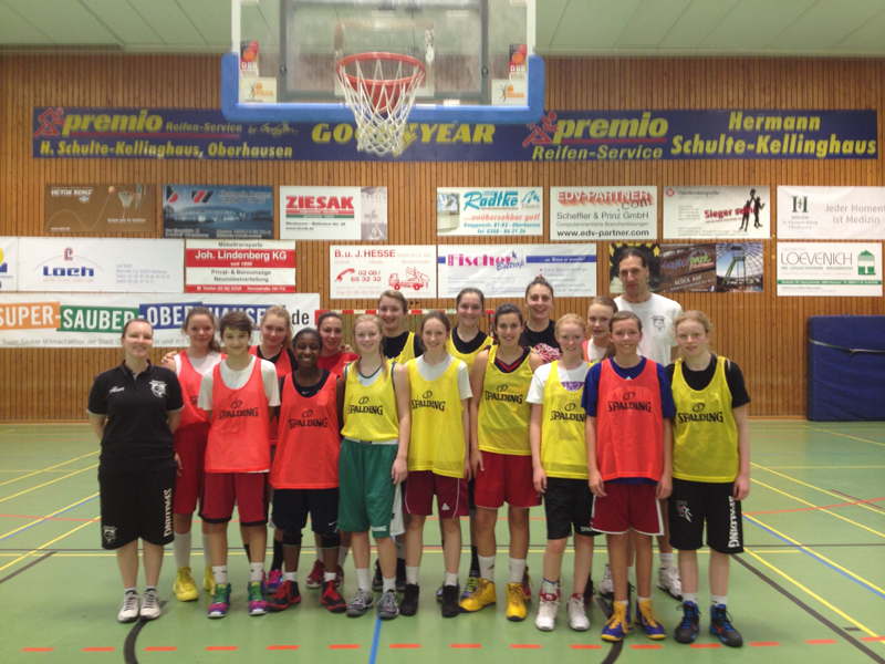 Coach Frank Müller und sein Trainergespann Nils Trautmann und Janine Krein begrüßten am Samstag, den 23.11.13 25 Spielerinnen zum Lehrgang in Recklinghausen. Der Vormittag sah abwechslungsreiche positionsgebundene individuelle Trainingsarbeit kombiniert mit athletischen Tests und Verteidigung individuell und gruppentaktisch vor, bevor nach der Mittagspause Angriffsstrukturen und FB im gruppentaktischen- und mannschaftstaktischen Maßnahmen eingeführt und vertieft wurden.