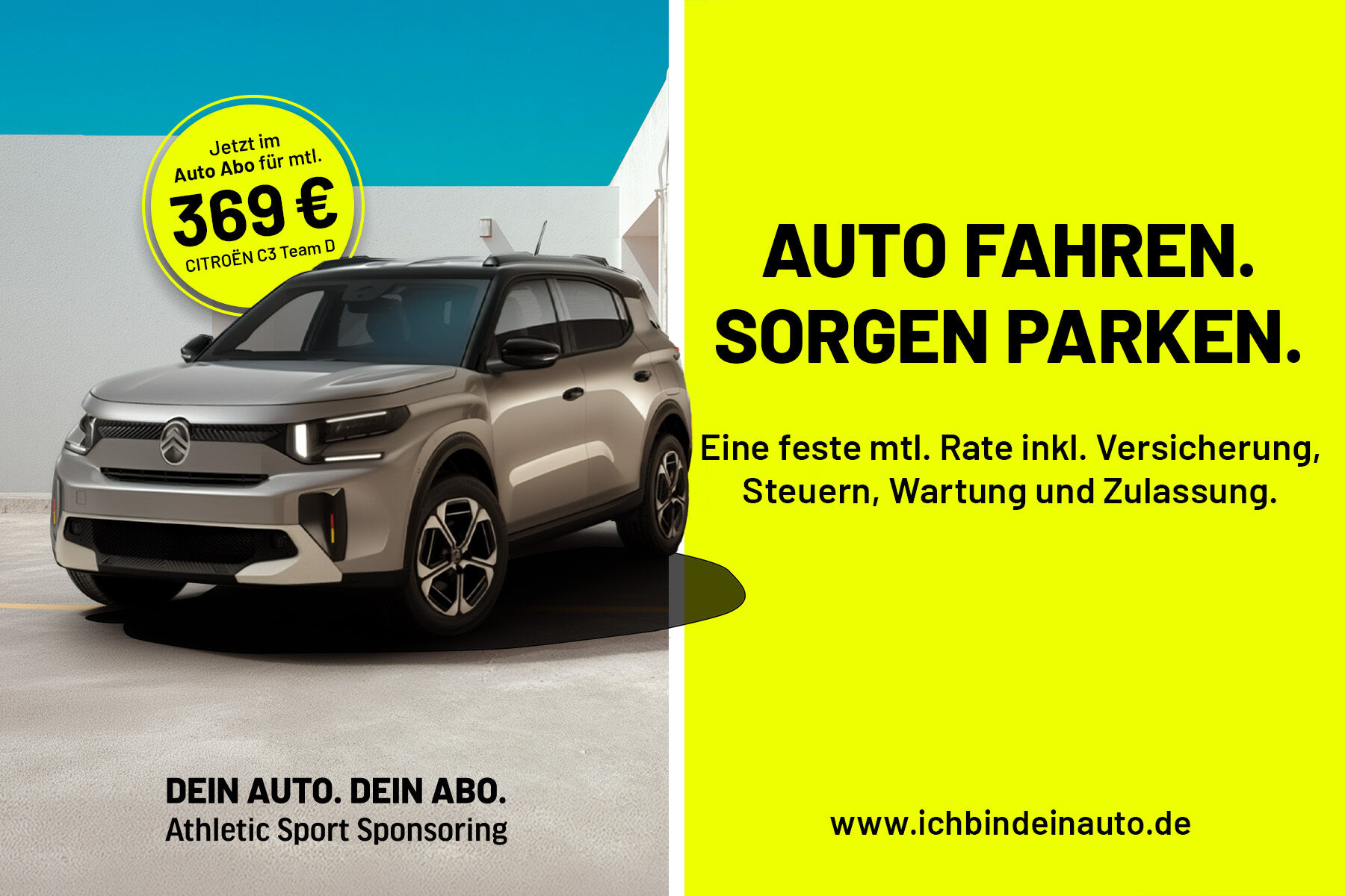 Seit 29 Jahren steht unser Partner Athletic Sport Sponsoring für Sicherheit und Verlässlichkeit. Mit dem Auto Abo bist du rundum sorglos unterwegs – einsteigen, losfahren, Kopf frei haben!